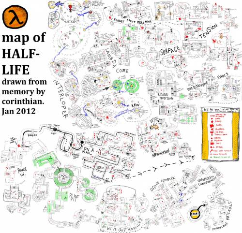 Прохождение Half-Life | Подробная карта Half-Life, нарисованная по памяти! Смотреть в оригинале! | |